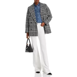 Outlet โ AQUA Houndstooth Plaid Print Double Breasted ๐งฅ Coat – 100% Exclusive Black/white ๐