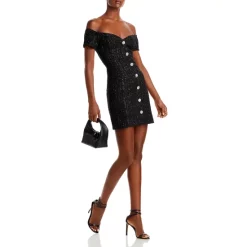 Wholesale ๐ AQUA Metallic Boucle Off-the-Shoulder Mini ๐ Dress – 100% Exclusive Black ๐ฅ