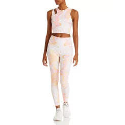 Outlet 😉 AQUA Dream Swirl Longline Sports Bra & Printed High Rise 7/8 Leggings – 100% Exclusive Peach Combo 😍