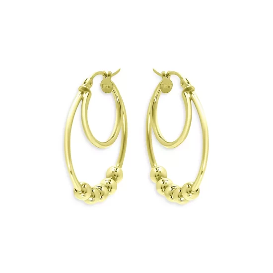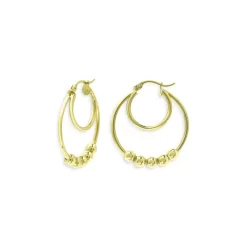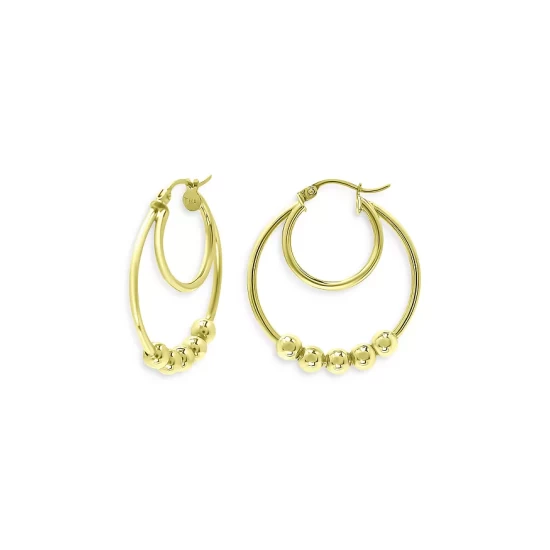 Cheap 🔔 AQUA Beaded Double Hoop Earrings In 18K Gold Plated Sterling Silver – 100% Exclusive 🔔