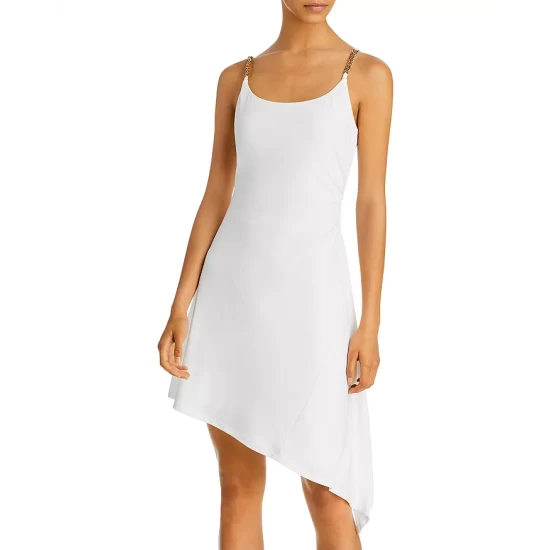 - Adjustable spaghetti straps with chain detail