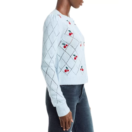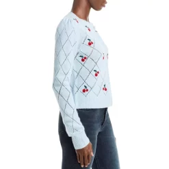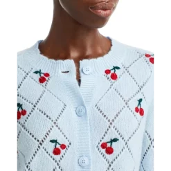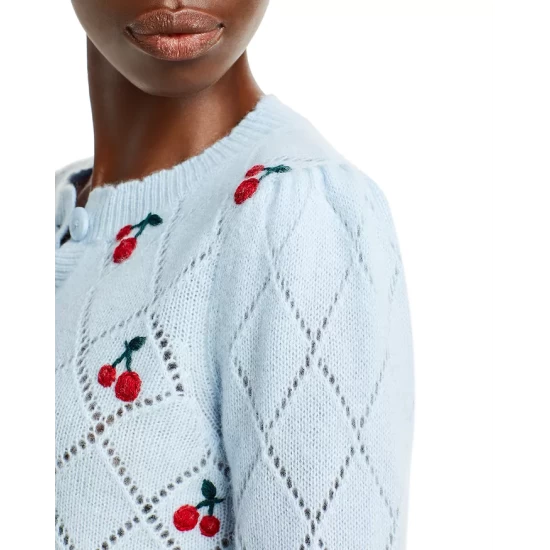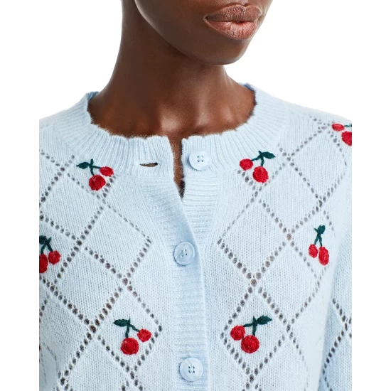 - Contrast cherry embroidery throughout