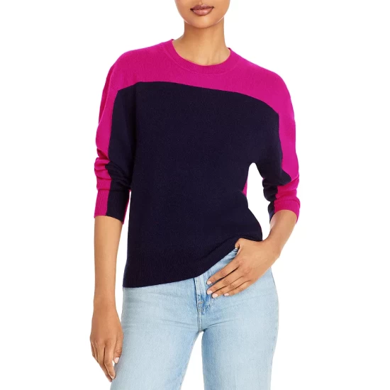 Deals 👏 AQUA Color Block Cashmere Sweater – 100% Exclusive Lapis/black 👍