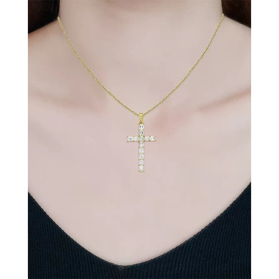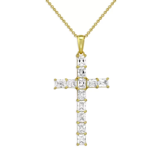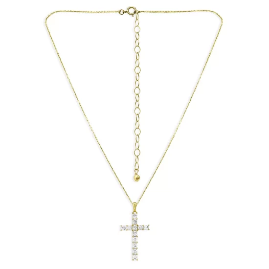 Budget โค๏ธ AQUA Cubic Zirconia Baguette Cross Pendant Necklace In 18K Yellow Gold-Plated Sterling Silver, 15.5-17.5″ – 100% Exclusive โค๏ธ