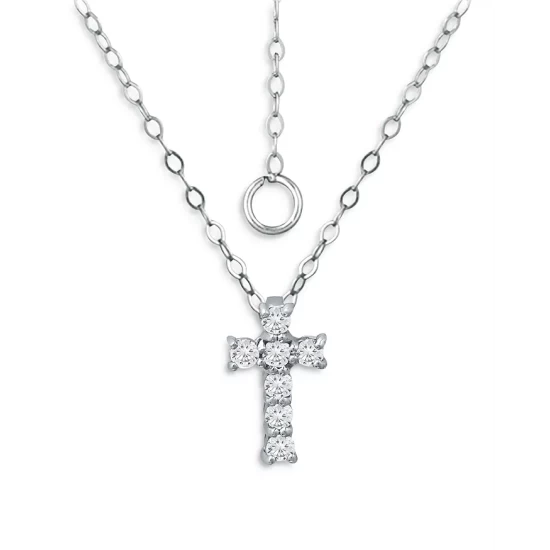 Promo ๐ AQUA Cubic Zirconia Cross Pendant Necklace In Sterling Silver, 15.5″-17.5″ – 100% Exclusive ๐