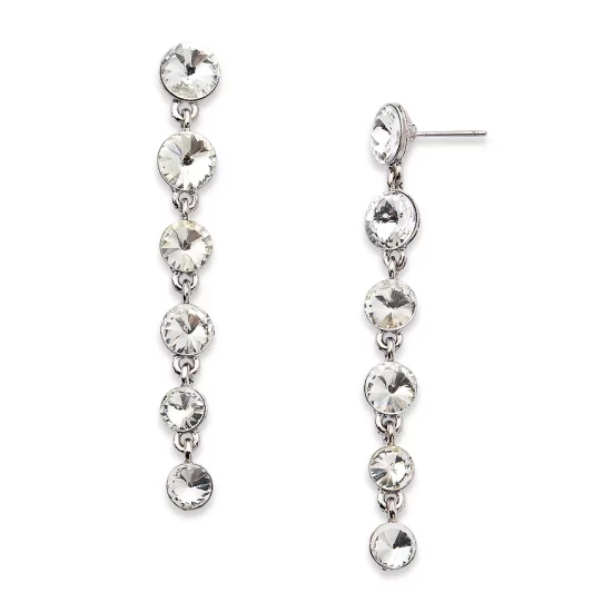 Hot Sale 😀 AQUA Cubic Zirconia Linear Drop Earrings In Silver Tone Plated Metal 👏