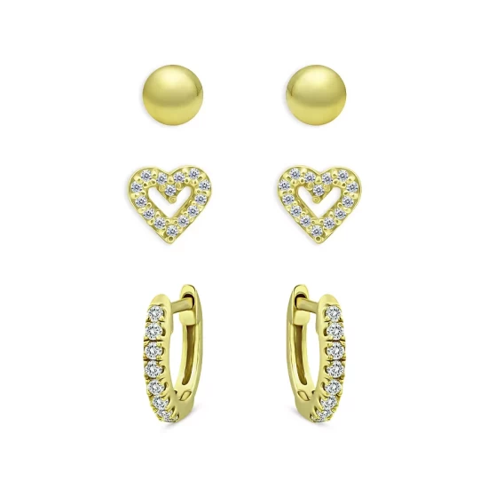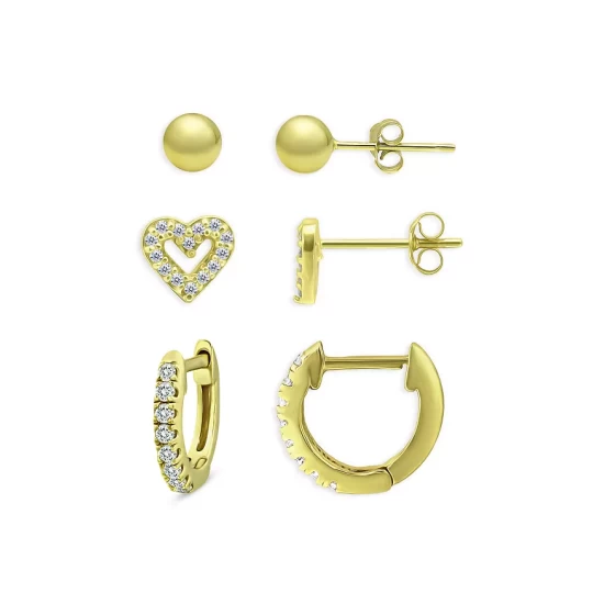 New ๐คฉ AQUA Cubic Zirconia Stud & Hoop Earrings In 18K Yellow Gold-Plated Sterling Silver, Set Of 3 – 100% Exclusive ๐งจ