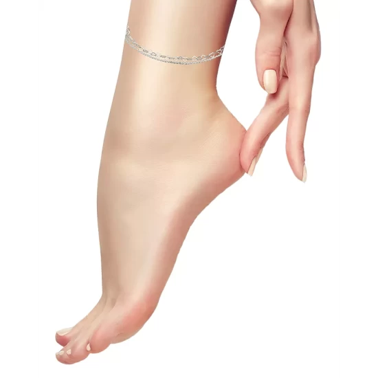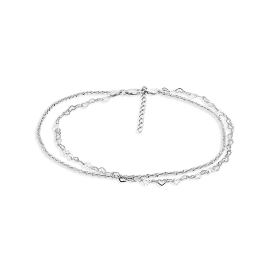 New ๐ AQUA Double Row Heart Link & Diamond Cut Rope Chain Ankle Bracelet In Sterling Silver – 100% Exclusive โญ