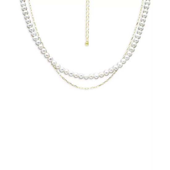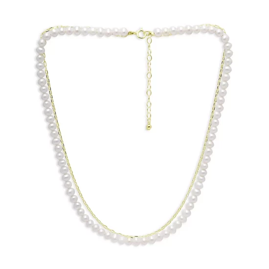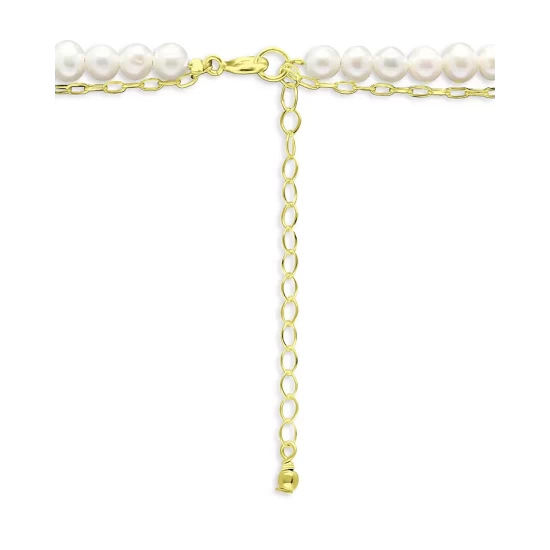 Buy ๐ฏ AQUA Freshwater Pearl & Paperclip Chain Double Row Collar Necklace In 18K Gold Plated Sterling Silver, 16″-18″ – 100% Exclusive White/gold ๐