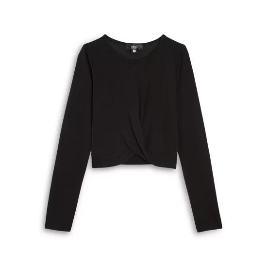 Brand new โจ AQUA ๐ง Girls’ Long Sleeve Twisted Front Top – Big Kid Black โ๏ธ