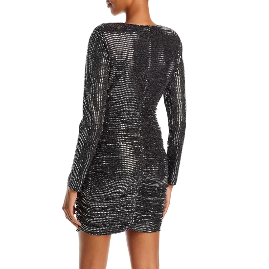 - Allover metallic rectangular sequin stripe embellishment
