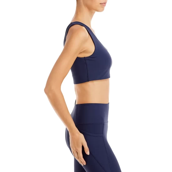 Work out in chic style in this one shoulder sports bra and matching high rise leggings from AQUA Athletic, the perfect addition to any serious workout closet.
