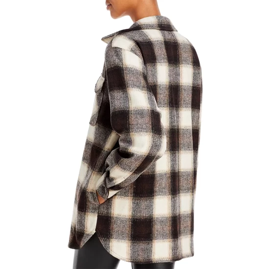 - Allover plaid print, patch pockets with flap and button closure at chest