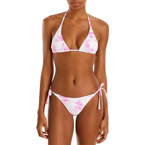 Tie together a chic vacay vibe with this timeless triangle bikini top and side-tie bikini bottom from AQUA Swim, radiating a detailed tropical print.