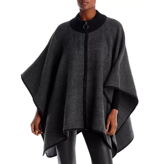 Deals 🔥 AQUA Ruana Knitted Zippered Poncho – 100% Exclusive Gray ⌛
