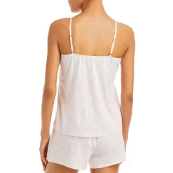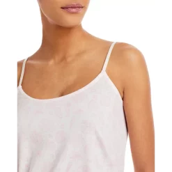 - Top: scoop neck, sleeveless, adjustable spaghetti straps, printed