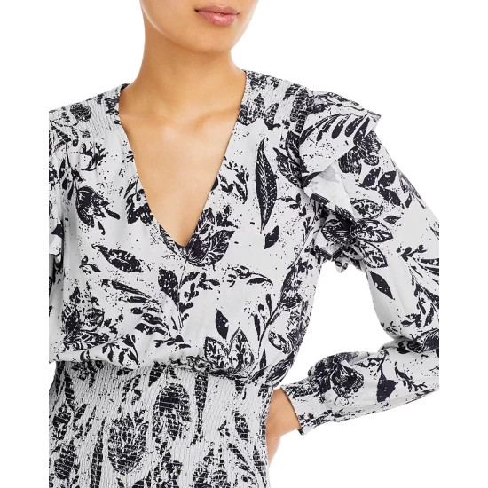 - Smocked shoulders with ruffle trim