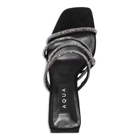 Best deal 😍 AQUA 👩 Women’s Livyr Rhinestone High Heel Slide 🩴 Sandals – 100% Exclusive Black Rhinestone ⌛